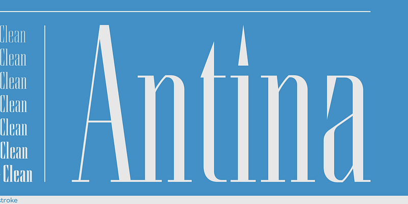 Antina emerged from Tony's development of the Thinstroke logotype. Its sharp and clean lines and rational structure adapted well to a large family of weights. For additional license options like app, enterprise, multi-user, and self-hosted web, visit [Antina on Type Network](https://store.typenetwork.com/foundry/thinstroke/fonts/antina).