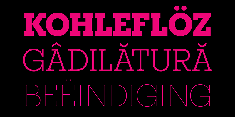 Elizeth is the seriffed counterpart to Ofelia. It is a very versatile typeface in two widths and seven weights, to be used in a great variety of situations. The normal width is a geometric slab which evokes early XX century rationalism — establishing dialogue with typefaces such as Rockwell — however using bracketed serifs. The typeface offers true italics, broad language support and a sort of OpenType features such as Small Capitals, old style and tabular figures.