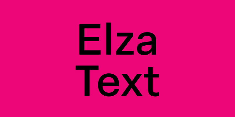 Elza is a typeface who responds to the intention of creating a type family without any personal traits or distinguishable features. The font offers oblique versions instead of true italics, and its widths are significantly more condensed than the respective Roman versions, so they stand out better when used together. It is the largest family in Blackletra's library to date, with 8 weights, 3 widths and 2 optical sizes for a total of 58 fonts. Each font has approximately 900 glyphs and offers broad language support and OpenType features like small caps, tabular and old style figures, and an alternate character to lowercase /a (one-storey). It is Blackletra's first typeface to offer a variable version with weight, width and slant axes.