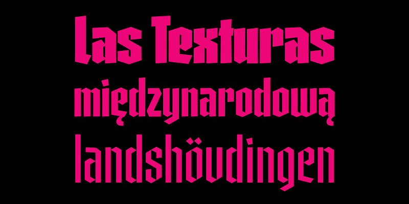 Gandur is a display textura in three weights, split into two families: Alte — the German word for old — and New. Gandur was inspired by other geometric texturas, especially Max Bittrof’s Element (1933). The design began by adhering to a strict hexagonal grid, but during its development, slowly moved from a purely geometric to a more pen-based design (this is especially true in the heaviest weights). The differences between Alte and New are essentially morphological, with reflections in the character set and OpenType features. Gandur New has a more humanistic, contemporary structure and is more ‘romanized’ then Alte. Gandur New also features small capitals. Gandur Alte, on the other hand, remains truer to historical forms, most notably: S s X x Z z. Gandur Alte also features the long-s, which can be accessed via a Stylistic Set or the glyph palette. (As is historically accurate, a short-s will be used at the end of words automatically when the historical Stylistic Set has been activated).