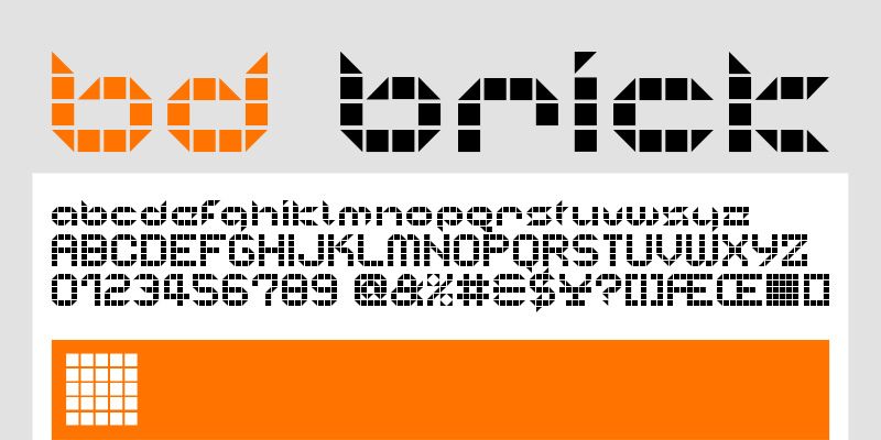 BD Brick is a modular font created with square and triangle bricks. Designed by Lopetz in 1996 and updated in 2007.