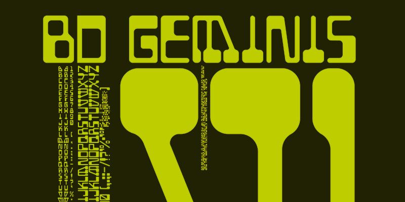 BD Geminis is a retro digital computer typeface designed by H1 in 2003.