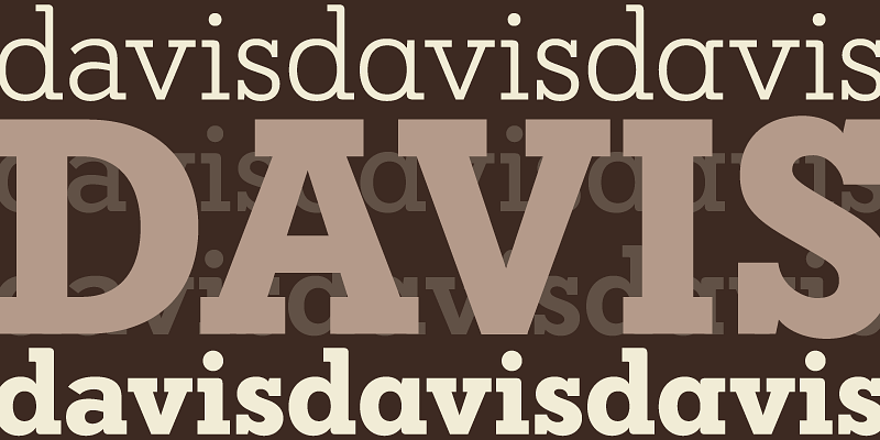 Davis and its sans serif counterpart, Davis Sans, work very well together to satisfy the multiple layers of corporate, advertising and interface applications, from identity and editorial to the many levels of product branding.