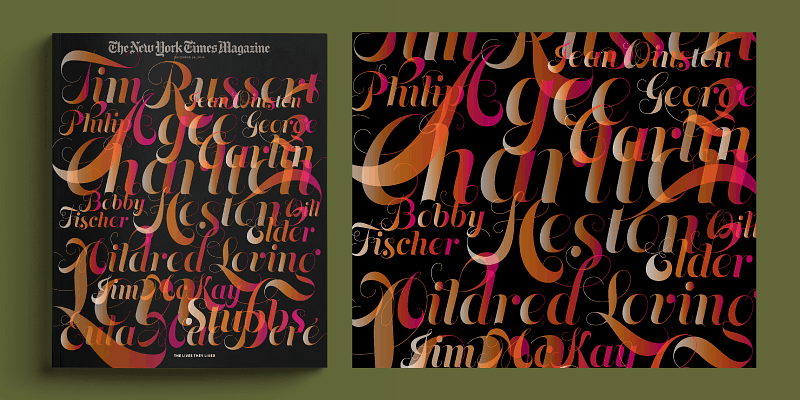 Memoriam was originally commissioned by the New York Times for their 2008 “Lives They Lived” issue, which went on to win multiple design awards. Later expanded for commercial use, it has become a common sight in display and packaging.