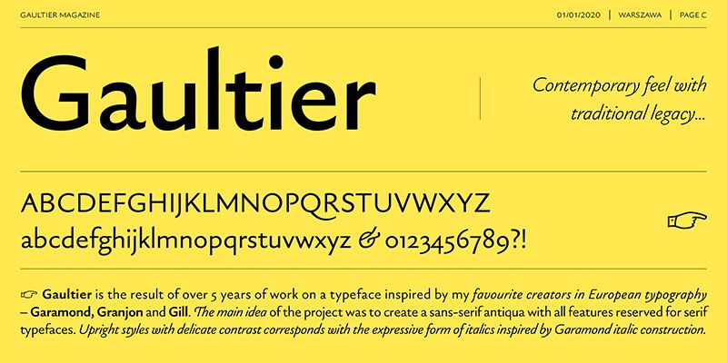 Explore Gaultier designed by Mateusz Machalski at Adobe Fonts.