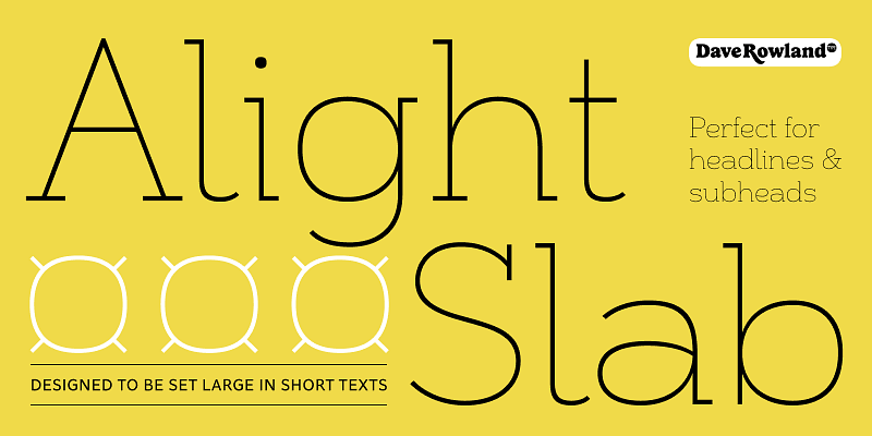 Alight Slab is, wait for it… A light slab! Designed to be set large, in headlines or subheads and (very) short paragraphs of running text. It has slightly super-elliptical forms and crisp details, giving it a contemporary look. Alight Slab features automatic fractions, a discretionary ct ligature, and a capital sharp s. Look no further than Anultra Slab for an ultra-bold accompanying typeface.