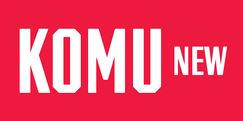 Komu is a revival of the style of letters that was frequently used on billboards during the socialist period in the former Czechoslovakia. They were usually uppercase letters made of paper and covered with a layer of aluminum foil. People just had to pick the letters (that included a variety of widths and sizes) out of a box and pin them up on a styrofoam billboard, thus making it easy to announce any event. Komu consists of two styles. Version A is squarish and includes some distinctive characters (K, 5, narrow E, and idiosyncratic diacritics) while version B is rounded with mostly uniform widths (with the exception of E, F and L). The optical disparity of the original lettering style was retained, so that some of the characters look slightly darker than others. Komu is intended to be used on posters, books and other products about Socialism in our region and includes full support for languages based on latin script.