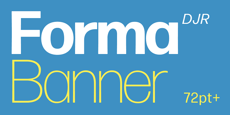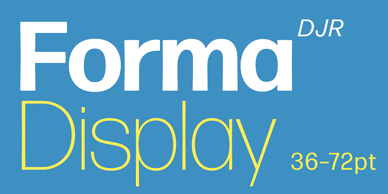 Forma DJR is a revival of Aldo Novarese’s late mid-century neo-grotesque for the Italian Nebiolo foundry. Working together with Roger Black and Indra Kupferschmid, David Jonathan Ross studied the original metal type and interpreted the design as a large family with optical sizes, rounded corners, and tapering stems. The weight range was later pushed to Hairline and Black extremes and reimagined as a variable designspace, with contributions from Ruggero Magrì. [Forma Brochure](https://www.typenetwork.com/brochure/forma) For additional license options like app and enterprise, visit Forma DJR Display on [Type Network](https://store.typenetwork.com/foundry/djr/fonts/forma-djr-display).