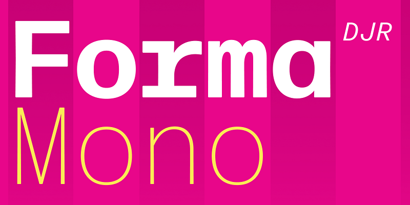 In Forma DJR Mono, Ruggero Magrì has taken David Jonathan Ross’s revival of the classic neo-grot from Nebiolo and brought it in harmony with the limitations of the monospaced grid. On its own, it excels at conveying technical data with clarity and poise; paired with its proportional cousin, it is the perfect option for charts, graphs, and tabular data. It strikes a distinctive tone, preserving the warmth of Forma DJR with inky, rounded corners, while never making you feel like it was produced by a typewriter. For additional license options like app, enterprise, multi-user, and self-hosted web, visit [Forma DJR Mono on Type Network](https://store.typenetwork.com/foundry/djr/fonts/forma-djr-mono).