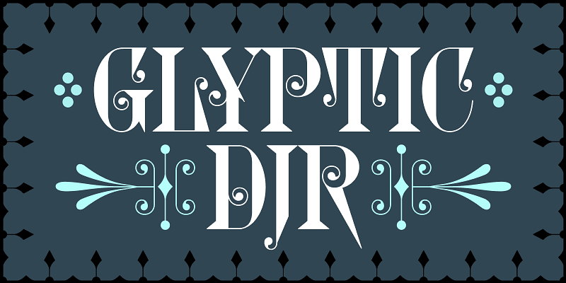 Glyptic DJR revives Herman Ihlenburg’s Glyptic, a decorative Victorian serif designed in 1878 and issued by MacKellar, Smiths & Jordan. My interpretation leans into the frenzied energy of the design, emphasizing the angularity of the wedges and vertical serifs, and then contrasting them against delicate spirals and curlicues. The spacing is tight—optimized for contemporary use. This revival also adds a Uncial-inspired lowercase, lining figures, and borders, none of which were present in the original design. For additional license options like app, enterprise, multi-user, and self-hosted web, visit [Glyptic DJR on Type Network](https://store.typenetwork.com/foundry/djr/fonts/glyptic-djr).