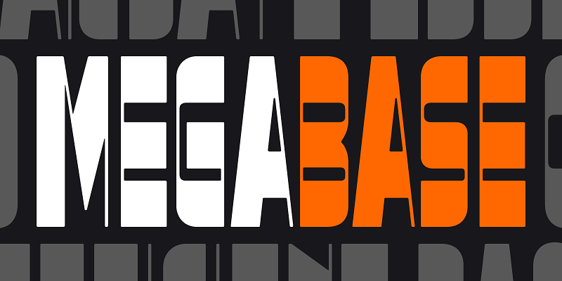 Megabase is a display gothic with strong horizontal stress inspired by the clunkiness of 19th-century gothics like Gothic Bold and the space-age funkiness of 1970s designs such as Aldo Novarese’s Sintex and Bob Newman’s Zipper. Megabase goes beyond its forebears in emphasizing its horizontality; while most typefaces strive for an even typographic color, Megabase embraces its unevenness, allowing topheavy, bottomheavy, and diagonal forms to stick out like sore thumbs. The typeface offers several variants of especially disruptive letters, allowing the designer to calibrate these interruptions. For additional license options like app, enterprise, multi-user, and self-hosted web, visit [Megabase](https://store.typenetwork.com/foundry/djr/fonts/megabase) on Type Network.