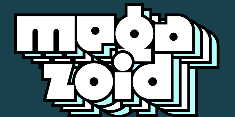 Megazoid celebrates the awkwardness of raw geometry. With little in the way of fine-tuning or optical compensation, it mashes blocky rectangles together with circular counterforms to create striking abstract shapes. Asymmetrical diagonals punctuate the design, adding a touch of unexpected dynamism. The result is a geometric sans that manages to feel just at home on a retro guitar amp as it would on a futuristic interstellar satellite. For additional license options like app, enterprise, multi-user, and self-hosted web, visit [Megazoid](https://store.typenetwork.com/foundry/djr/fonts/megazoid) on Type Network.
