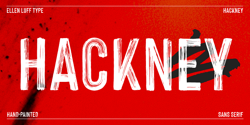Hackney is an entirely hand-painted sans serif. A raw, bold, condensed design with brushy imperfections and an earthy realism. It keeps all the incredible definitions of real painted strokes as a transparent texture, giving you a proper hand-painted effect without having to do anything (or go near paint). Whether large or small, Hackney is perfect for adding texture to bold downtown character or personal artisanal flair, from signs to packaging and advertisements to posters.