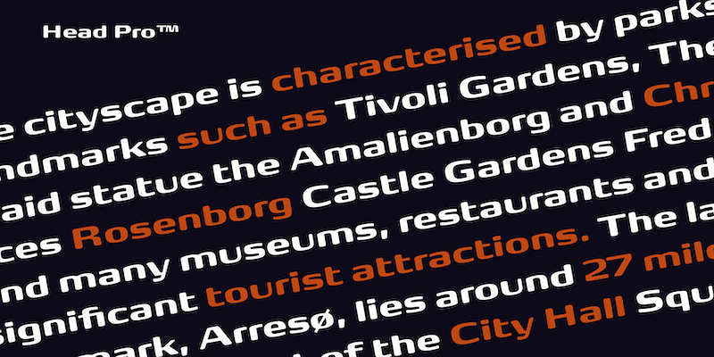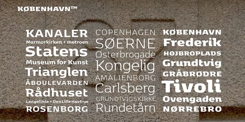 A part of the larger Kobenhavn family, CS stands for "Condensed Sans". The Danish capital Copenhagen has been in need of a typeface that unites the city’s many visual expressions. The shape of the letters are inspired by the city’s culture and the visual environment and design in Denmark in the 20th century. It is relatively low and wide as the city itself and with rounded corners that give it a warm visual mood. “You can find examples of the use of a typeface with the same purpose in other parts of the world, for example, to identify local areas or urban tourism materials. FP København is our take on that kind of typeface” the designers add.
