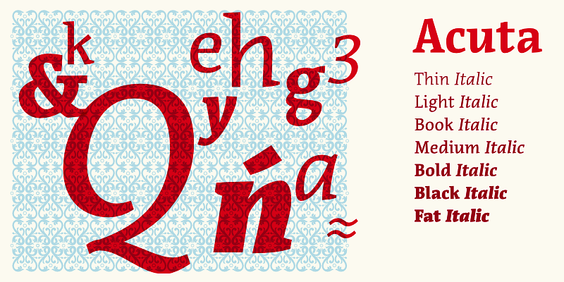 An all-purpose text serif family with a good readability and a contemporary, robust look thanks to its low-medium contrast. Sharp angles and italic construction give a dynamic twist to the text.
