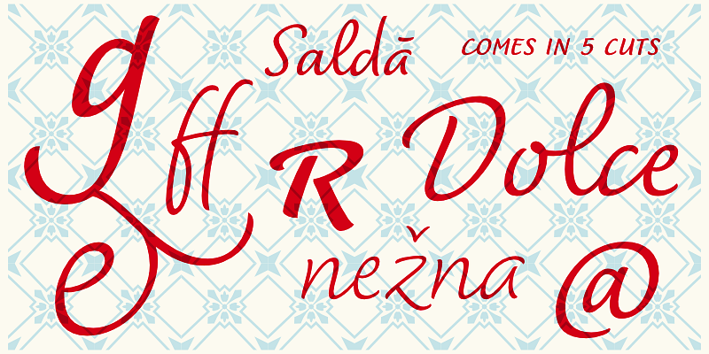 Dolce strikes a balance between the orderly and the informal, resulting in a type of writing that flows naturally. Small caps are included for all-caps setting, as well as extensive language support.