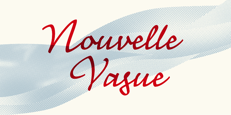 Nouvelle Vague is a display script typeface with a retro feeling and a distinguished look, defined by a steady rhythm, only broken by its offbeat and dynamic uppercase initials.