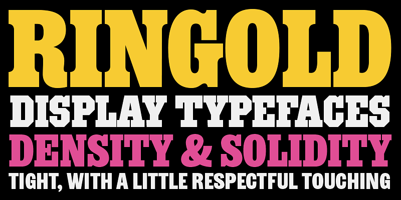 Ringold is for those bold, solid headlines with letters that need to be tight without quite touching. Adjust the tone of your text with faces within the family that share the same proportions and density, but with a shift in personality from one style to the next. Ringold Clarendon is a bit whimsically nostalgic. Ringold Slab is its sharper, more buttoned-down cousin. Ringold Gym beefs up the Slab and makes it more architectural. Ringold Sans takes off the serifs but holds on to some of the warmth. Ringold Soft is a smoother, friendlier spin on the Sans. The 5 styles each support about 505 languages. For additional license options like app, enterprise, multi-user, and self-hosted web, visit [Ringold on Type Network](https://store.typenetwork.com/foundry/bijoutype/fonts/ringold).