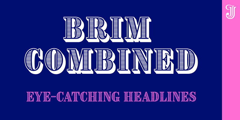 Inspired by chromatic woodtype from the 1800s, Brim Narrow’s styles stack to create a huge variety of decorative titles. Warm and tactile, it’s perfect for posters, packaging and logotypes. For additional license options like app and enterprise, please visit: [Jamie Clarke Type](http://www.jamieclarketype.com/).