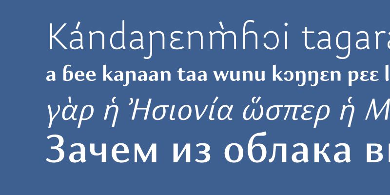 Kigelia LGC (Latin/Greek/Cyrillic) contains full complements of the International Phonetics Alphabet and the African Reference Alphabet. It also contains a full complement for polytonic Greek and a full Cyrillic complement for all the languages that use it. Numerous stylistic sets provide the user with many orthographic and language options.