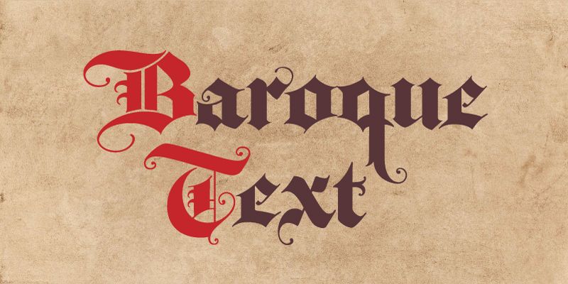 Baroque Text is a Blackletter style font with extravagant flourishes and forms. Inspired by handlettering in an old "how-to" book on calligraphy, this typeface is both beautiful and commanding.