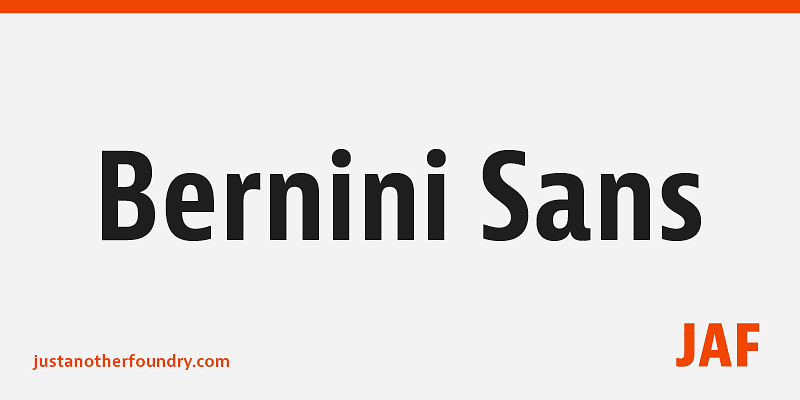 JAF Bernini Sans is a type system with two sub-families: JAF Bernino Sans and JAF Bernina Sans. JAF Bernino Sans’s finely balanced weight distribution and open shapes make it a great text face, while the wide variety of weights and widths provide the designer with a powerful toolbox for headings and display typography. JAF Bernina Sans is a more informal version with alternate letterforms, such as round dots and a double-storey g. ##View the [PDF specimen](https://justanotherfoundry.com/pdf/JAF_Bernini_Sans.pdf)