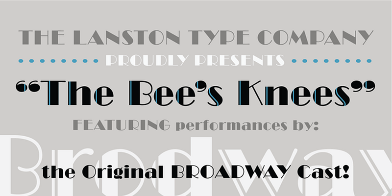 LTC Broadway, the iconic Art Deco face, was originally designed by Morris Fuller Benton for ATF in 1927. In the late 1920s Sol Hess added a lower case, and an engraved version for Lanston.