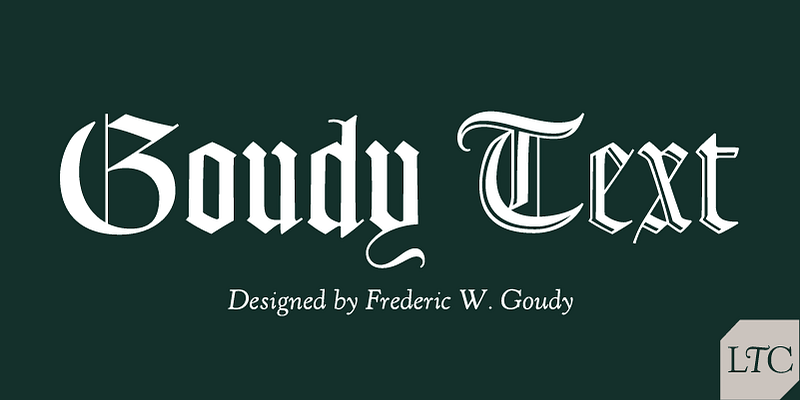 LTC Goudy Text is a blackletter face designed by Frederic Goudy in 1928 based on Gutenberg’s 42-line Bible. Goudy Text Shaded is an inline display variant that was added later by Lanston Monotype as decorative Lombardic Titling Caps intended to accompany and add a more distinctive historical flourish to Goudy Text. A full lowercase was added, along with some handy ligatures and alternates. Consider Goudy Text as an obvious nod to the past or something a little irreverent for today.