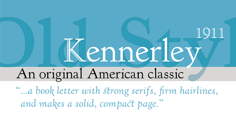 LTC Kennerley was designed by Frederic W. Goudy in 1911. One of Goudy’s best text faces, Kennerley is considered an original American classic as it is not based on historical type designs.