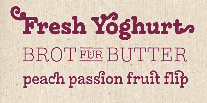 LiebeRuth is your 100 percent hand-made organic type. She absolutely loves to be typeset in large and small sizes, because Legibility is her middle name. (Yes, we know it’s not a typical girl’s name.) She is friendly and polite, but she also has a few quirks. Her friends are impressed with how natural she manages to look every day. Her four weights ensure that Ruth has the right boldness for any context: birthday invitation, personal correspondence, photo album, or billboard ad. During the creation of this font, her designer ate plenty of healthy, organic foods. We think this is the reason why Ruth looks so fresh and lively. And of course Ruth has been designed with lots of Liebe (which is German for “love”—and she speaks many other languages, too). One more thing Ruth is marvelous at: showing off her curly-swirly swashed alternative letterforms that can be activated via OpenType. Each style contains more than 560 gluten-free glyphs—now that is great value!