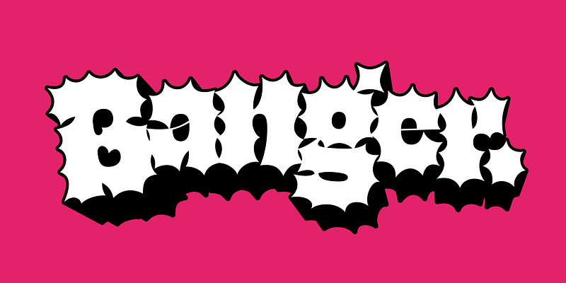 Banger is a thorny, prickly, and potentially explosive blackletter. A lively and energetic typeface that works great for anything that needs a little extra bang. Loosely inspired by decorative blackletters and metal album lettering. Banger is the result of searching for new textures in type and exploring unique methods of making. The typeface avoids straight lines like the devil, and is shaped to be a charming and friendly and readable display face.