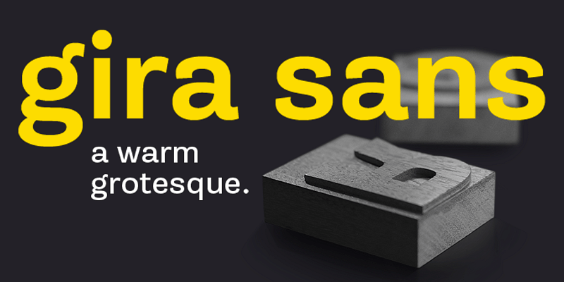 Gira Sans is a grotesque typeface, inspired by the 19th century sans serifs. It's a modern, human and joyful take on that model.