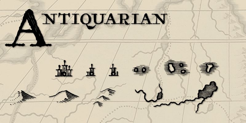 Antiquarian™ replicates the hand-lettered text in Henri Abraham Chatelain’s famous 1700s Atlas Historique. Has numerous ligatures, Latin and Greek alphabets, and several cartographic ornaments.