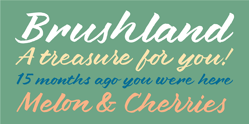 Brushland was initially born as custom project, commissioned as a typeface that could give a strong personality to a wine label, for that we agreed that a script font could be the best solution. The goal was to achieve a natural feeling as if it was really written. The project raised some questions, how natural should be this script typeface? How to simulate this writing feeling? For this, four different glyphs were drawn for the same character. This “Feature” or “Behavior”, programmed in the font, combines the variants in the sequence of 1, 2, 3 & 4 and replaces the letters at the time the words are composed, in order to avoid the repetition of glyphs. Through the “Contextual Alternates” OT Feature, the user can decide if they appear or not. For additional license options like app, enterprise, multi-user, and self-hosted web, visit [Brushland on Type Network](https://store.typenetwork.com/foundry/type-o-tones/fonts/brushland).