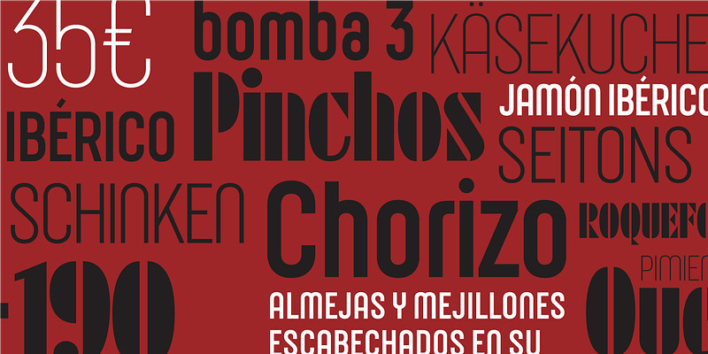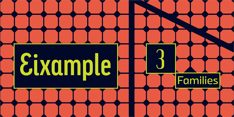 Sabina Chipară’s and José Manuel Urós’s Eixample contains three subfamilies—Dip, Glaces, and Villa—inspired by modernist signage found in Barcelona’s Eixample neighborhood. The name of each family is related to the sign’s location or to some specific elements of its design. Dip’s capitals are built with contained decoration to achieve maximum compatibility between letters. The script capitals are the default uppercase, but an alternate slab style is included as OpenType glyphs. Narrow and Inline styles round out this versatile subfamily. Glaces’s three styles slide between monolinear and high contrast and each offers a choice between conventional closed apertures for characters like C, G, and S, and more playful open apertures. These features, as well as small caps, can be accessed using OpenType. The Villa family contains sturdy, industrial letters, free from ornament, and extrapolated from the personality of a single letter “A” from the Villarroel Pharmacy sign. The Eixample families clearly show their origins as display fonts inspired by modernist signage, but they have been engineered for great results at smaller sizes as well. Each of them would be an excellent choice for any number of branding projects, from a hip new bar to a playful children’s clothing brand. For additional license options like app, enterprise, multi-user, and self-hosted web, visit [Eixample](https://store.typenetwork.com/foundry/type-o-tones/fonts/?name=eixample&page=0) on Type Network.
