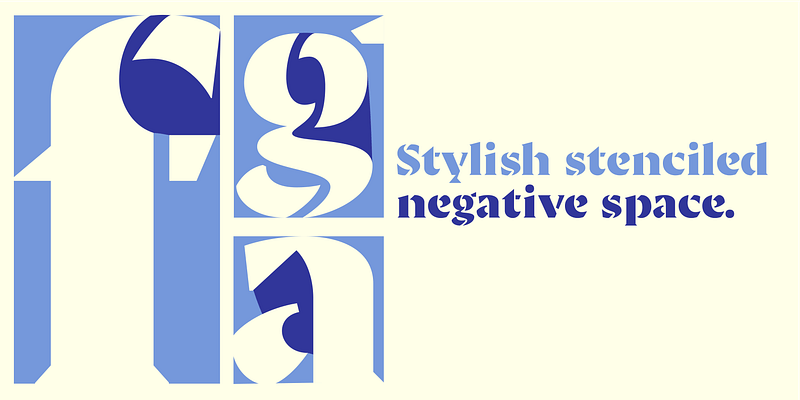 Fabulosa embodies a unique vision, merging historical influences from the ‘fat face’ typography style and the flair of Ed Benguiat’s Caslon Black Swash, designed for Photo Lettering, Inc. in the 1960s. The ‘fat face’ style, with its exaggerated strokes, was pioneered by typefounder Robert Thorne (1753–1820) in the early 19th century. Thorne’s innovation evolved modern type styles with strong contrast and heavy serifs. Caslon Black Swash, a vivid representation of mid-20th-century typographic creativity, features swashes and decorative flourishes that evoke nostalgia. Inspired by these styles and her love for stencils, Laura created Fabulosa. Her vision was to blend the retro with the fantastical, adding a touch of glamour. Fabulosa stands out as a timeless and contemporary statement piece, perfect for projects that evoke stylish nostalgia and make a bold visual impact, from high-fashion magazines to quirky indie film posters.