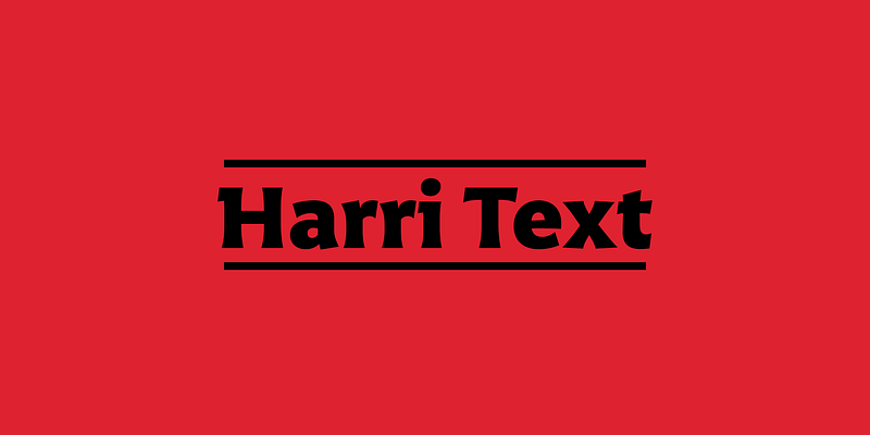Harri Text is more than an extension of Harri. Although the two typefaces shares the same origin, a certain flavor, and a great deal of its idiosyncrasies, Harri is an uppercase-only typeface intended for display uses while Harri Text is a true text family, including a new extra-light weight, italics, small caps, and other additions that make it suitable for editorial purposes. For additional license options like app, enterprise, multi-user, and self-hosted web, visit [Harri Text on Type Network](https://store.typenetwork.com/foundry/type-o-tones/fonts/harri-text).