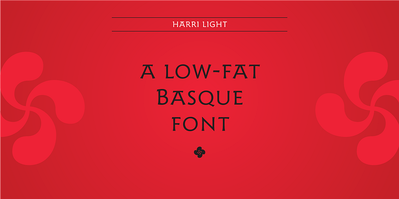 Harri (which means “stone” in Basque) is a display font based on the hallmark letterforms used in signs and building façades all over the Basque Country in Spain. This idiosyncratic lettering style, unique to the culture, evolved from ancient inscriptions carved on gravestones that can still be found in the French part of the Basque Country (Behe Nafarroa, Lapurdi, and Zuberoa). Harri takes some of its more significant features from those engraved letterforms, but also from the current overemphasized shapes derived from them, while remaining mindful of their ancestors: Roman inscriptions and—going even further back—Roman capitals. This evolution is echoed in Harri throughout its weights, from the clean formal Light to the expressive ExtraBold; Type-Ø-Tones 2017 For additional license options like app and enterprise, visit Harri on [Type Network](https://store.typenetwork.com/foundry/type-o-tones/fonts/harri).