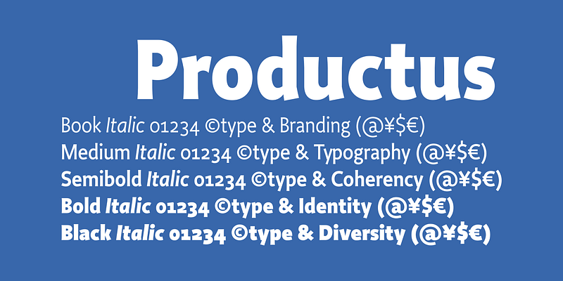At the turn of the millennium, Petr van Blokland conceived Productus as the humanist sans serif companion to his prizewinning oldstyle Proforma. Van Blokland has shaped the pair of typefaces as an ideal vehicle for distinguished corporate design, capable of styling all imaginable documents. Small text sizes Both offer related distinction for headlines. Each supports the structure of the other. Font Bureau, 2000. For additional license options like app and enterprise, visit Productus on [Type Network](https://store.typenetwork.com/foundry/typetr/fonts/productus).
