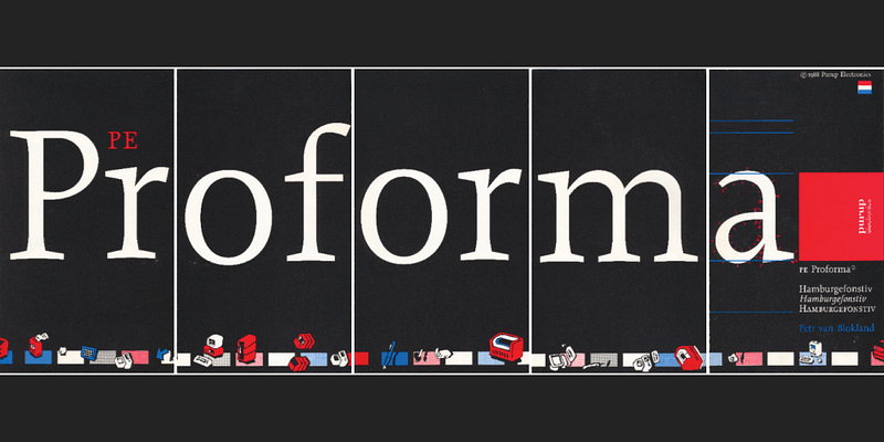 In the mid-1980s, Petr van Blokland designed Proforma for Purup, a leading Danish supplier of form systems. The design, whose oldstyle structure offers essential copyfit and legibility, led ATypI to award Van Blokland the Prix Charles Peignot for distinguished typographic achievement by a designer under the age of thirty-five. In 1995, Proforma was the only typeface nominated for the Rotterdam Design Award. With its matching sans serif companion Productus, Proforma delivers distinction in corporate design. Font Bureau, 1994. For additional license options like app and enterprise, visit Proforma on [Type Network](https://store.typenetwork.com/foundry/typetr/fonts/proforma).