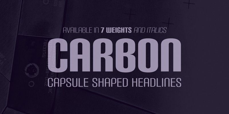 Carbon was originally created in 1999 and has been overhauled a decade later. Some of the numerals and most of the punctuation has been redesigned. Accents cover more languages. Along with new weights and italics, there’s Carbon Fence with a 1960s style choppy wire fence effect. Carbon now includes fractions & numeric ordinals.