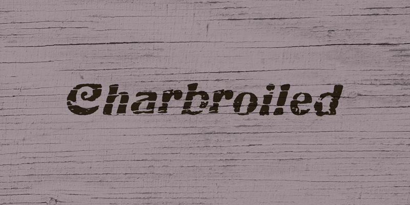 Charbroiled is a charred, antiqued font based on American Italic from 1902. In OpenType savvy applications, letter pair ligatures help break up the monotony of obviously repeating letters.