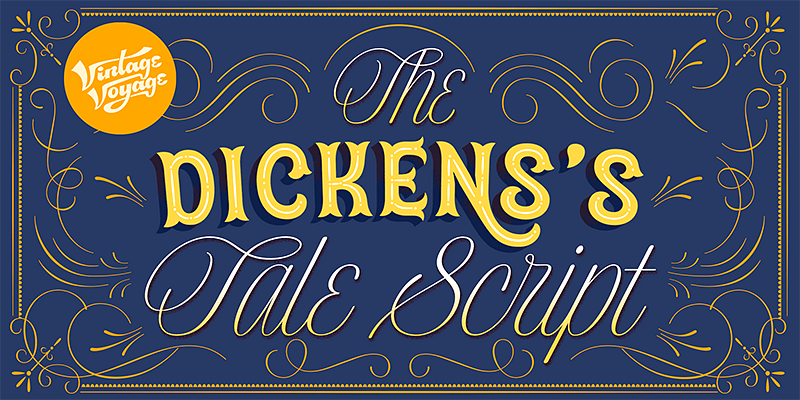 Vintage Voyage Design’s Dickens Tale Script is a classic design evoking copperplate engravings and Victorian calling cards. With swashes and alternates ready, this aptly named typeface evokes ghosts of Christmas past and the season’s generosity of spirit. Dickens Tale Script is a splendid choice for branding projects, holiday marketing campaigns, advertising, package design, logo design, cards and invitations, poster design, films and books, social media posts, and more.