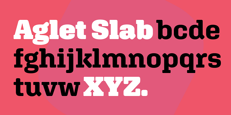 Roundness is the heart of Aglet Slab’s structure—not merely a surface detail. Blunt serifs and repeated geometric shapes find variety in a strategic hierarchy of curves, from subtly cushioned points to abrupt circular ends. An underlying framework of 45° and 90° angles provides a stable foundation for more boastful characters and organic details. Aglet Slab reverberates a friendly high-tech tone when used prominently, but it stays crisp and nimble in longer texts. A broad range of weights in roman and italic add up to fourteen versatile styles, each with matching symbols. You’ll want Aglet Slab at hand for whatever comes around the corner. ------------------- Download the PDF [here](https://xyztype.com/uploads/300003/1493599113863/XYZ_Type_Aglet_Slab.pdf)