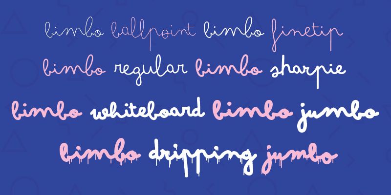Bimbo is a monoline script font family created by Francesco Canovaro. The typeface is characterized by a handmade spontaneous aesthetic, essentially for display use, minimal lettering and logos. This handwritten sensibility is enhanced by the built-in letter swapping open type feature that makes sure double letters are always different from one to another. Open counters and a monoline design allow for great readability at small sizes, making Bimbo the ideal font for creating fake handwritten notes and metatextual jokes. The typeface includes six weights and over 300 glyphs to cover over 70 languages using the latin, greek and cyrillic alphabets.