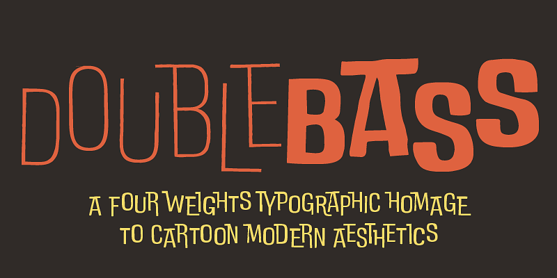 There's no way for a true lettering aficionado to avoid falling in love with Saul Bass’s vibrating, almost brutal cut-out aesthetics. As an humble homage to Bass’s inspiration and sensibility, and inspired also by cartoon modern lettering and jazzy graphics of the fifties, Cosimo Lorenzo Pancini decided to work on a typeface that could show interlocking rhythm and variation in design without resorting to thousands of ligature special letters, but rather by virtue of its modular structure. The result is DoubleBass, a jazzy four-weights display family that provides an out-of-the-box tool for cartoon modern style logo and heading design. The alternating sets of capital letters and numbers make sure that a bouncy rhythm is kept while you type away, thanks to open type ligature substitution. Lighter weights can work for small blocks of text, while the regular and heavy weights show their best in big sizes and display uses. Foreign languages using the Latin alphabet are covered, as well as Russian Cyrillic. Anytime you need that jazzy retro vibe, just put on your turntable some cool bebop record and start designing!