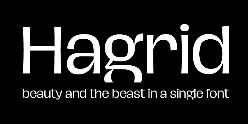 Cosimo Lorenzo Pancini designed Hagrid as a celebration of the expressive potential of grotesque letterforms when exposed to the crypto-typographer’s love for the strange and the overlooked. Hagrid blends grotesque structure with calligraphic counterspaces, inverted contrast, and brutalist shapes to create a bold, impactful voice for both print and digital use. Originally released as a display family, Hagrid was expanded and redesigned in 2025 to improve readability and functionality. The updated Text family features refined proportions, and optimized spacing for long-form reading, while the Display family introduces subtle contrast in lighter weights and a new Black style with fully closed counterspaces for maximum visual impact. The family supports Extended Latin, Cyrillic, Greek, and Arabic scripts, with the Arabic set revised in collaboration with Murad Alsharaweb. OpenType features include positional numbers, discretionary ligatures and a playful "Monsters" stylistic set that transforms letters into expressive, creature-like forms. Hagrid is ideal for editorial, branding, and expressive typography projects that embrace originality and typographic personality.