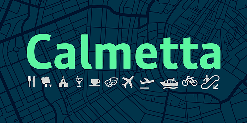 Calmetta is a contemporary humanist sans typeface with a generous x-height and slightly condensed proportions. Being designed for wayfinding, its legibility and economy help across many other uses.