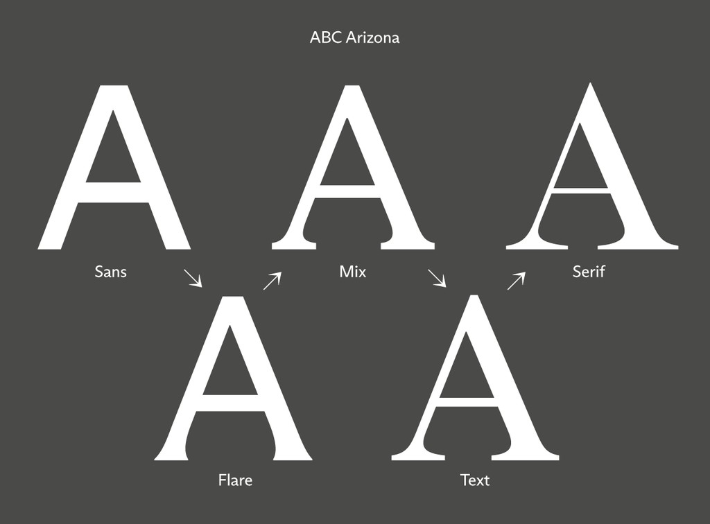 ABC Arizona is the first ever sans to serif “superfamily” that packages its five looks — Serif, Text, Mix, Flare, and Sans — into one single font file. In other words, it’s a slim, all-genres-in-one font happy-meal. Versatile and adjustable for any context. Arizona has five distinctive yet connected subfamilies. Arizona Serif is a high contrast, pointy serif with a modern-meets-Renaissance freshness, and on the other side of the spectrum, Arizona Sans is a straight-forward grotesque with a humanistic touch. In-between lie other species, such as the nearly-but-not sans Arizona Flare. Arizona Mix is chunkier and low-contrast. Lastly, Arizona Text is a classic text serif typeface that’s well-suited for reading. Stretching from its headline to small text possibilities, an entire library can be typeset with just this one typeface. Each subfamily comes with thin, light, regular, medium, bold, and italics as static font files. Or the typeface can be used as a variable font, which includes...