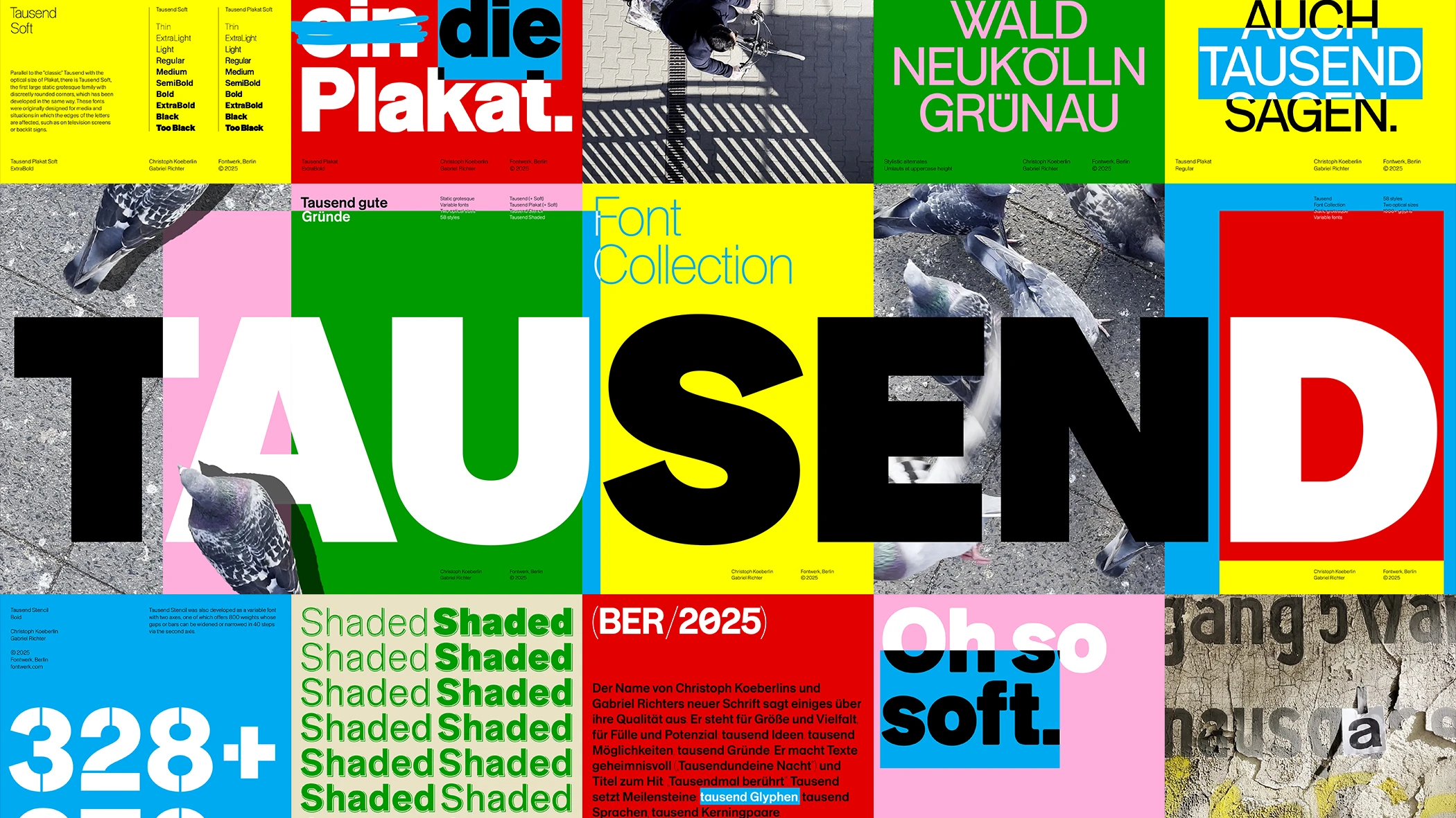 Tausend is a modern sans-serif typeface that draws from the tradition of German grotesque typefaces while incorporating contemporary design elements. It was developed through a collaborative process between Christoph Koeberlin and Gabriel Richter, focusing on roundness and versatility. The typeface is suitable for a wide range of applications, from branding to signage, and conforms to modern typographic standards for accessibility.
